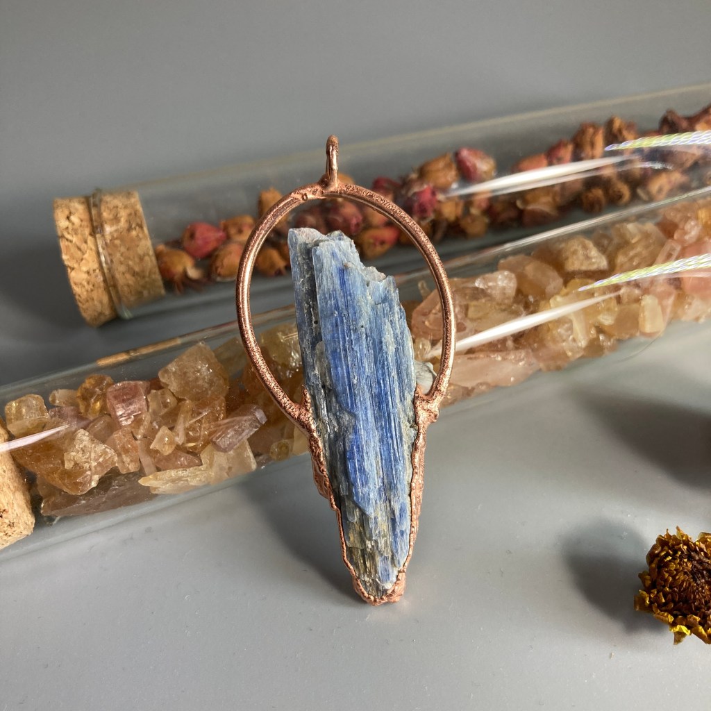 Moon Labradorite Crystal Stone Electroformed Copper Patina Necklace – Boho Bahia