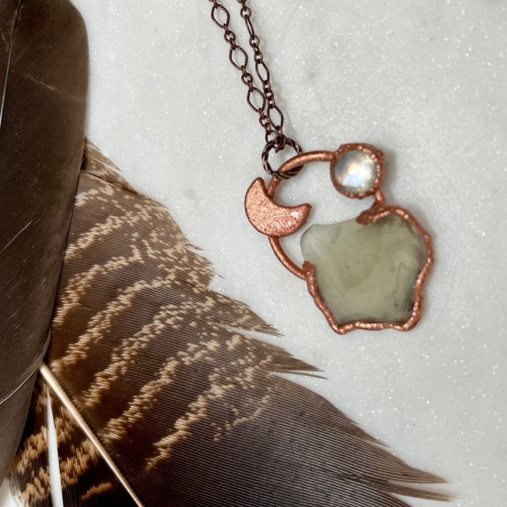 Libyan Desert Glass is said to be up to 29 million years old. A meteorite impact caused melting and created shock waves that formed high-pressure minerals, bestowing a new crystal here on Earth. Like Moldavite, Desert Glass just vibes differently. – Metaphysical Properties: confidence, manifestation, Akashic Records access, personal will, physic and mental abilities